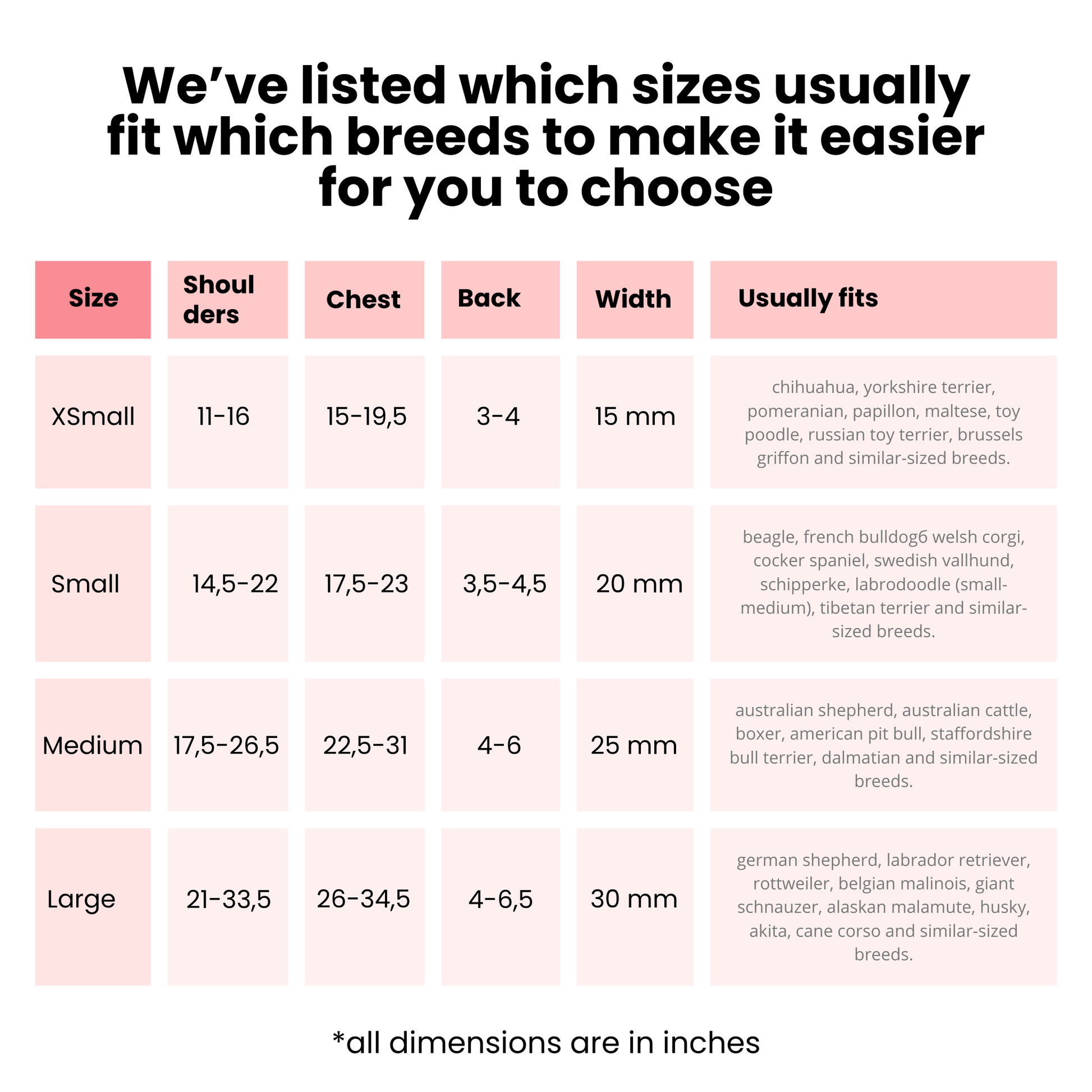 Suitable for most dogs like: australian shepherd, australian cattle, boxer, american pit bull, staffordshire bull terrier, dalmatian and similar-sized breeds.